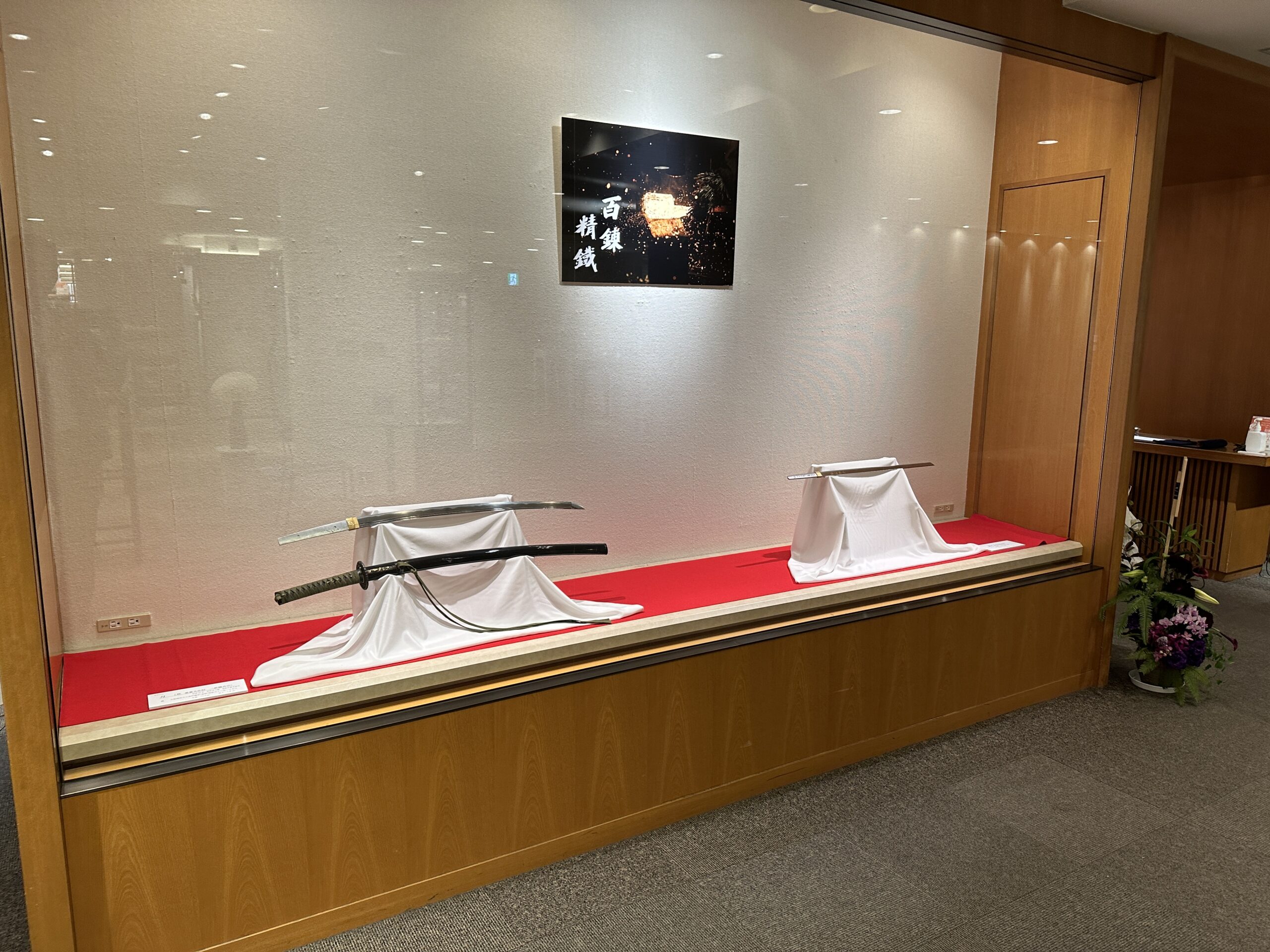 奈良県で制作する名工、月山貞利刀匠の個展が東京日本橋髙島屋美術画廊にて開催されています。入口正面で出迎える名物 二筋樋貞宗写と世界平和を祈念して制作された直刀。