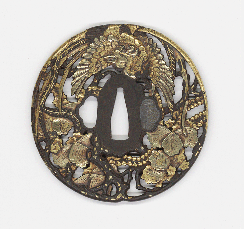 肥前は現在の佐賀県と長崎県にあたり、特に長崎は鎖国時代にも海外に開かれていた窓口として栄えた地である。そのため和洋文化が交錯し、独自の美意識が育まれた。本作も桐と鳳凰を大胆かつ緻密な高肉彫で施し、躍動感が溢れる仕上がりとなっている。鳳凰が桐の木に宿る意匠は天下泰平、繁栄、長寿の象徴する吉祥図として尊ばれてきた。