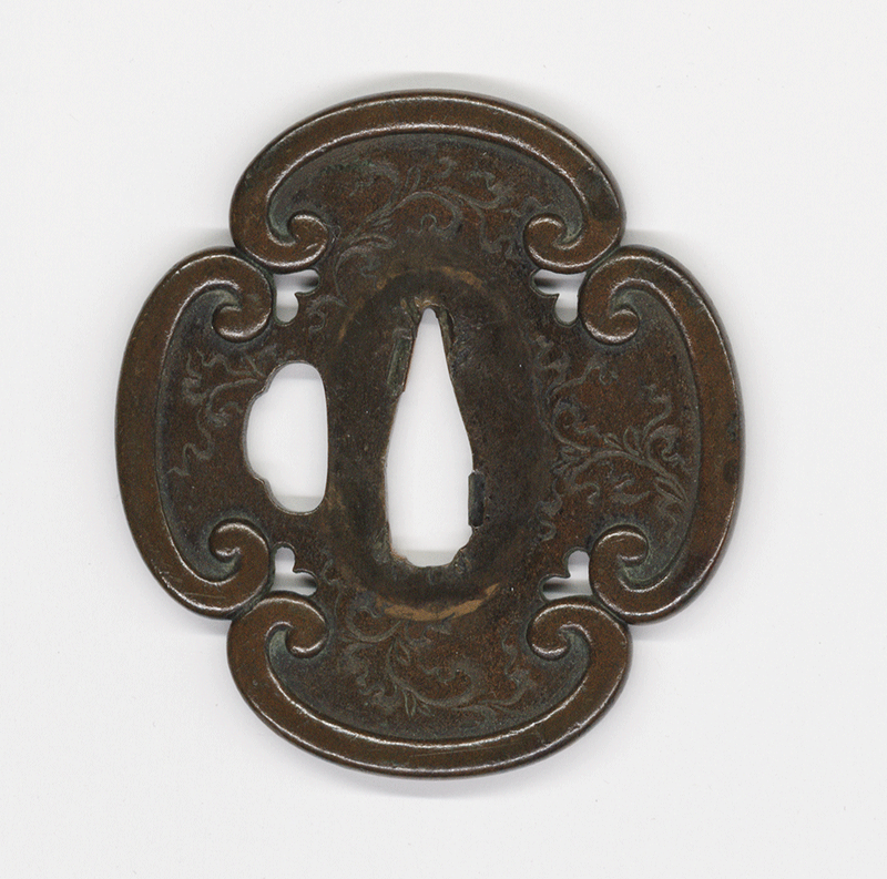 室町時代に制作された古金工と極められた唐草図鐔の特別保存刀装具指定作品。