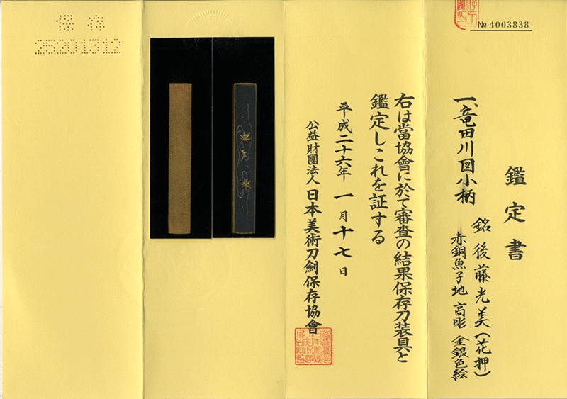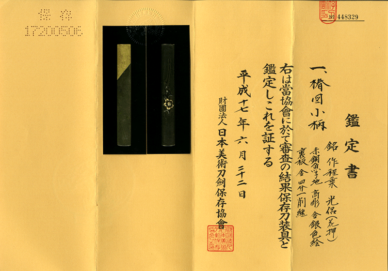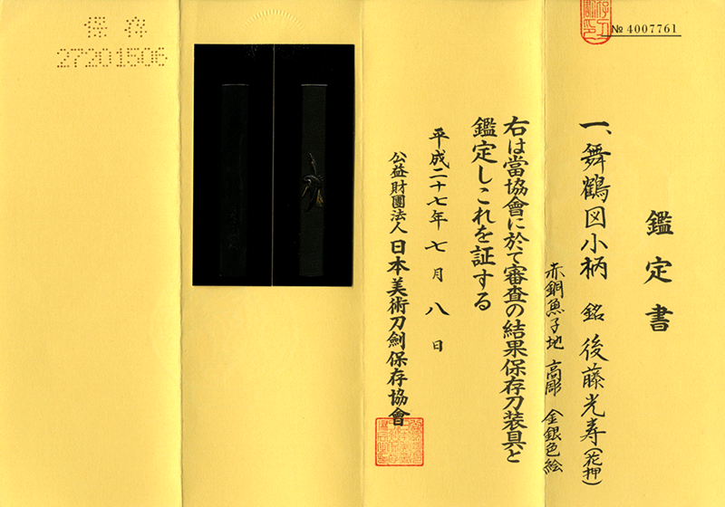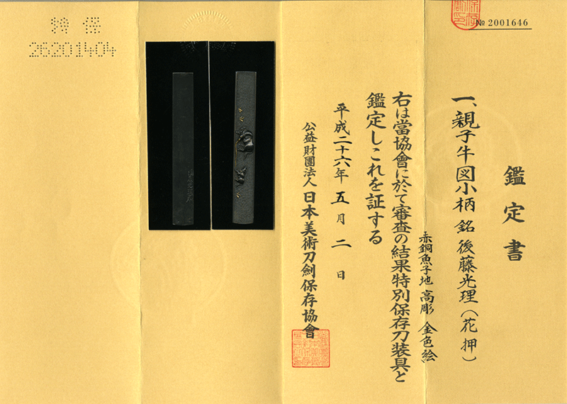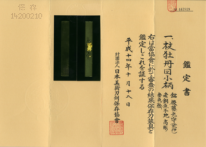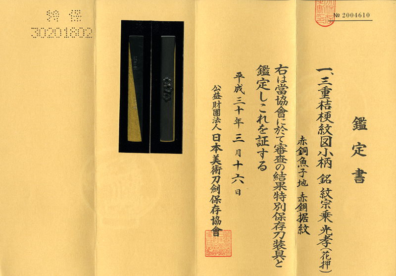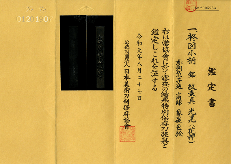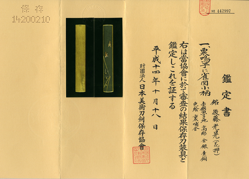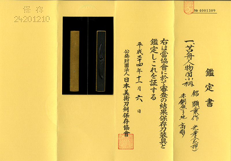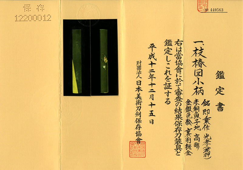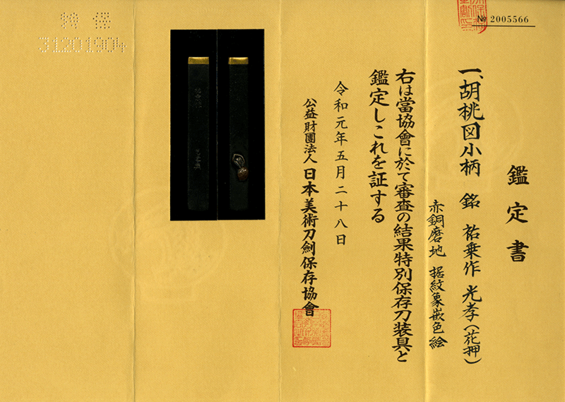 鑑定書内容:財)日本美術刀剣保存協会 特別保存刀装具[N.B.T.H.K]Tokubetsu Hozon Tosougu