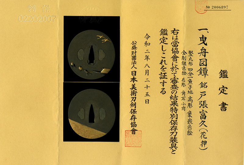 鑑定書内容:財)日本美術刀剣保存協会 特別保存刀装具[N.B.T.H.K]Tokubetsu Hozon Tousougu