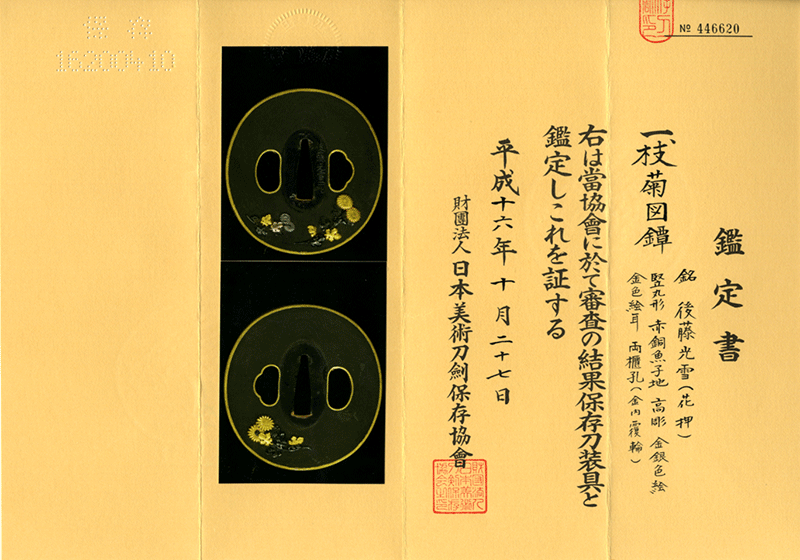 鑑定書内容:財)日本美術刀剣保存協会 保存刀装具[N.B.T.H.K]Hozon Tousougu